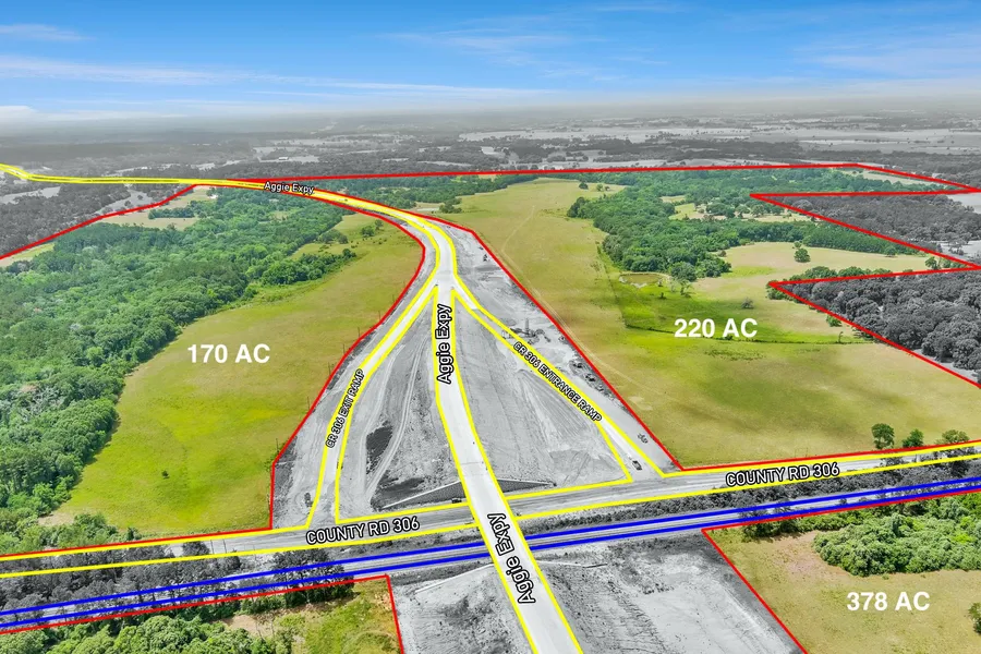170 Acre development tract located at the Hwy 249 exit & CR 306 hard corner. Tract has over 5,200 ft of Hwy 249 frontage, and access from Hwy 249, CR 307 and CR 307. TXDOT has provided preliminary guidance on approved curb cut location off of Hwy 249 (see map link).