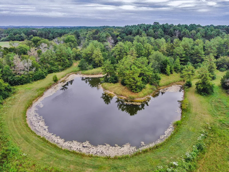 The property line visible the undeveloped adjacent tract majestically rising again, establishing a view that extends thousands of yards devoid of anything but pastures and trees. We now pass through into the easternmost section of the ranch, looping around the horseshoe pond, named for its shape; it serves both wildlife and livestock and has bass waiting to be caught. The lake exudes a sense of tranquility with a buffer of trees and landscape in every direction.