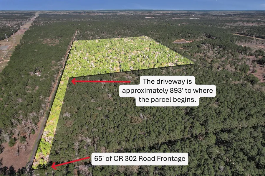 Use 9521 CR 302, Plantersville, TX for your GPS. From FM 1774, head northwest. Turn left on Finke Road. Drive passed 9521 and look for Realtor sign. There are 2 stakes with pink tape that mark the approximate driveway location