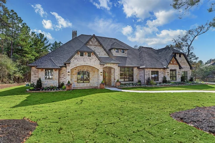 Experience easy living in this luxurious 4BR/4.5BA 1-story on secluded 1.38-acre wooded lot in master-planned Crown Ranch gated community. Built by G&G Designs, only the finest materials and thorough craftmanship go into the construction process. Ideal for hospitality, this spacious estate has 3 secondary bedrooms each w/ private baths & multiple entertaining & living spaces such as an open-concept kitchen & family center w/ fireplace as well as a massive covered outdoor space featuring a fireplace. Retreat into slow living in the spacious primary suite featuring soaring ceilings, a spa-like bathroom & expansive walk-in closet complete w/ built-in island. Other amenities include a wine alcove, private study, breakfast room, front & back covered patios, & oversized 3.5-car garage w/ golf cart storage. Super low tax rate!