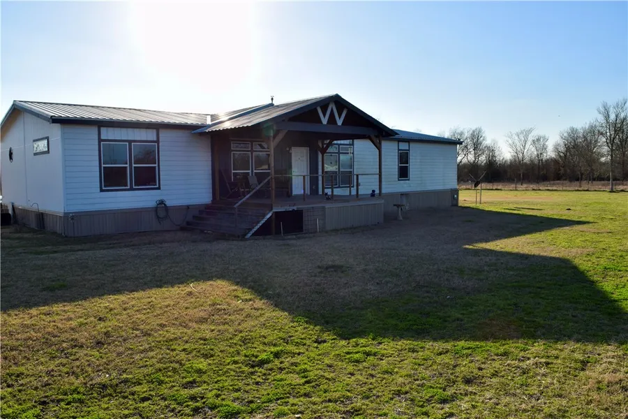 Nestled in the heart of Iola, TX, this splendid 4-bedroom, 3-bathroom residence offers an exquisite blend of country charm and modern amenities. Set against a backdrop of beautiful scenery, this property provides an immediate sense of tranquility with its spacious and inviting front and back porches; unwinding and enjoying the picturesque surroundings. Inside, discover thoughtfully designed interiors featuring a rare second primary suite, complete with double vanities for added luxury and convenience. Each bedroom is designed for comfort and versatility, while the open-layout living spaces are both relaxing and entertaining. The kitchen, boasting ample cabinetry and modern appliances, serves as the hub of this welcoming home. A unique feature of this property is the workshop garage, outfitted with its very own air conditioning unitan additional space for creative pursuits. Outside, a custom fence encloses the area, providing both privacy and a safe haven for enjoying the expansive grounds. This manufactured home is conveniently located near Iola School, offering both educational convenience and the benefits of a tight-knit community. The blend of rural appeal and accessibility to local amenities make this a prime choice for those seeking a harmonious blend of lifestyle and locale. Experience this unique offering firsthand.