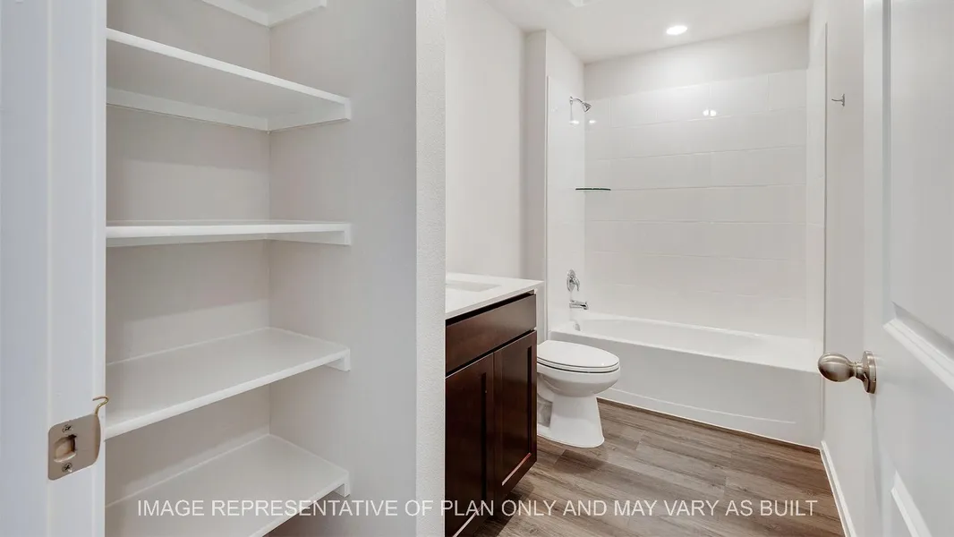 The Camden is a single-story, 3-bedrooms, 2-bathroom home featuring approximately 1,501 square feet of living space. The entry opens to two secondary bedrooms and bath with hallway closet. An open concept large combined dining and living area leads into the center kitchen. The kitchen includes a breakfast bar and separate pantry. The main bedroom, bedroom 1, features a sloped ceiling and attractive bathroom with dual vanities and spacious walk-in closet. The standard covered patio is located off the living room. Additional finishes include granite countertops and stainless-steel appliances. You’ll enjoy added security in your new D. R. Horton home with our Home is Connected features. Using one central hub that talks to all the devices in your home, you can control the lights, thermostat, and locks, all from your cellular device. With D. R. Horton's simple buying process and ten-year limited warranty, there's no reason to wait!