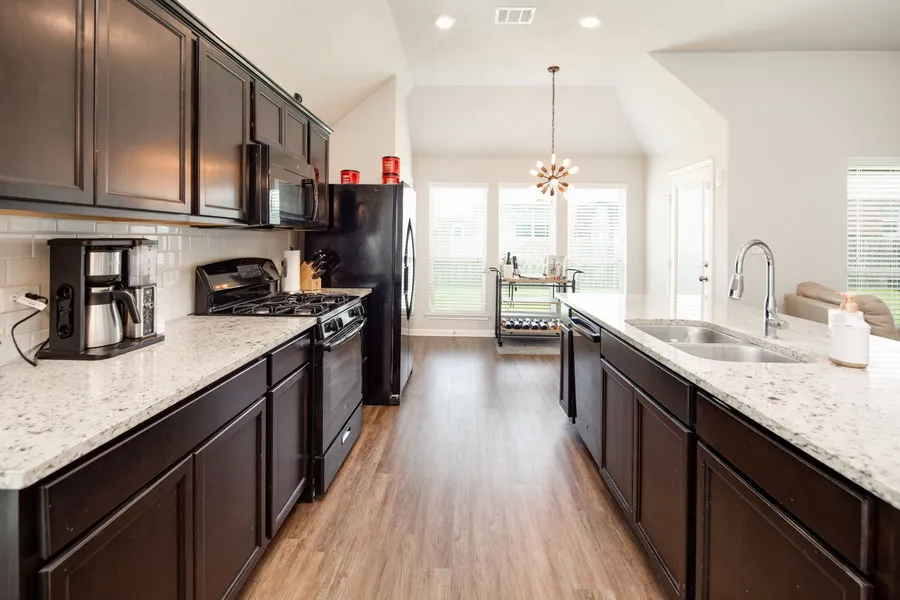 Welcome to this well-maintained 4 bedroom, 2 bathroom home in the desirable Pecan Lakes Golf Course community! Featuring a functional split floor plan, this home offers both privacy and space with a bright, open-concept kitchen and living area--great for entertaining or everyday living. The kitchen boasts a gas range and plenty of counter space, all flooded with natural light.