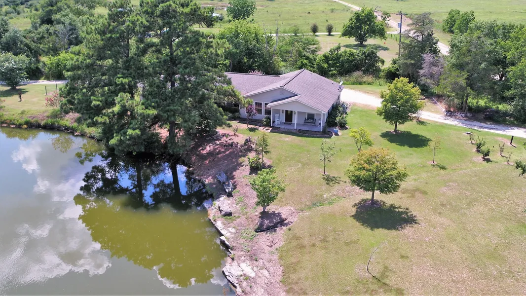 Grimes Co.: Beautiful country property located between Huntsville and College Station on 8.86 acres. Spacious 2566 SF home (CAD) features 4 bedrooms and 2 full baths, 2 living areas, island kitchen, tile and laminate flooring, and lots of storage. Outdoor features include a fabulous water view of the property's nearly 2.78 acre lake, a 42 x 16 workshop, backyard fence, and a 1368 SF mobile home for visitors or investment income. Horses and livestock welcome on this unrestricted property. MLS# 89433884