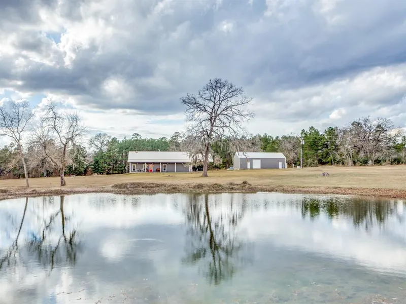 18.52 acres with everything you need to enjoy country living close to town! Unique property delivers a mix of wooded and cleared space, rolling pastures, a stocked pond, and stunning views everywhere you look. 17.52-ac is AG exempt -- ready for livestock, wildlife watching, hunting, or other country pursuits. Main 4-bed, 2-bath home is 1722 sqft with open kitchen/living, huge granite island with bar seating, ensuite primary, plus addtl. 600+sqft of finished space ideal for man cave/she-shed, extended living, new primary, etc. Full porches front and back, back opens to a gorgeous heated pool with full deck, stonework accents, and waterfall. Attached carport offers plenty of parking. Barndo bldg. adds 2700 sqft of space: 900-sqft apt. with kitchen/laundry; 900-sqft open storage; 900-sqft 2nd story office. PLUS! 2 RV hookups, Generac generator, 1000 gal. buried propane tank, 1000 gal. fuel tank, storage shed, and more! Located in Anderson-Shiro ISD, close to new Aggie Expressway.