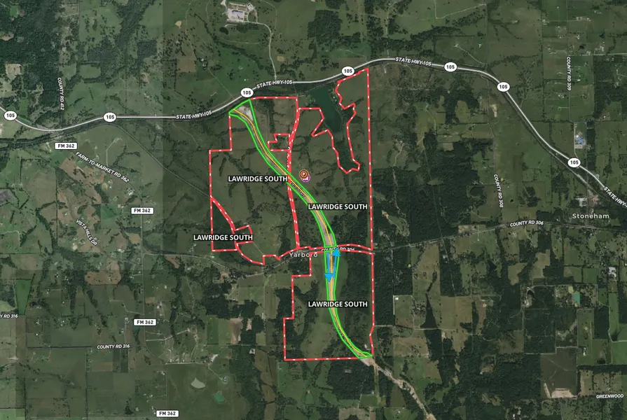 Located directly in the growth path between Magnolia, Montgomery and Bryan/College Station/Navasota, the South Lawridge property presents immense development potential for both residential, commercial and industrial users. The property sits at the intersection of the new Hwy 249 (Aggie Expressway) and Hwy 105, with road frontage on both Highways, as well as intersecting FM 1468 and County Road 306. The property includes frontage on both entrance and exit ramps to/from Hwy 249 from CR 306. Unparalleled elevations and views for NW Houston / Grimes County provide very unique residential opportunities, and freeway access and potential rail access also present Industrial / Distribution opportunities.
