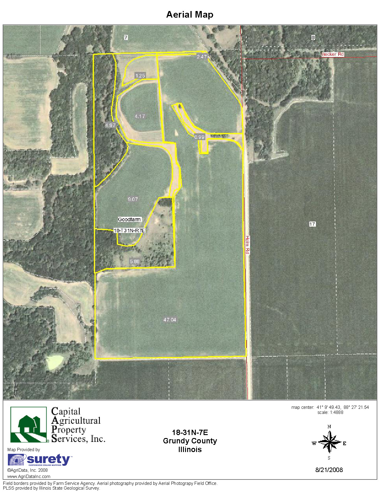 Research Parcel Information4 miles northwest of Dwight, Illinois, on Holm and Becker Roads, part of Section 18, Goodfarm Township, Dwight County, Illinois.