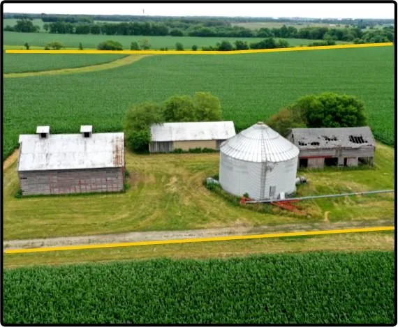 There is a 36' grain bin with approximately 15,000 Bu. storage, a 48' x 26' wooden corn crib and a 60' x 28' concrete block shed located on this farm.