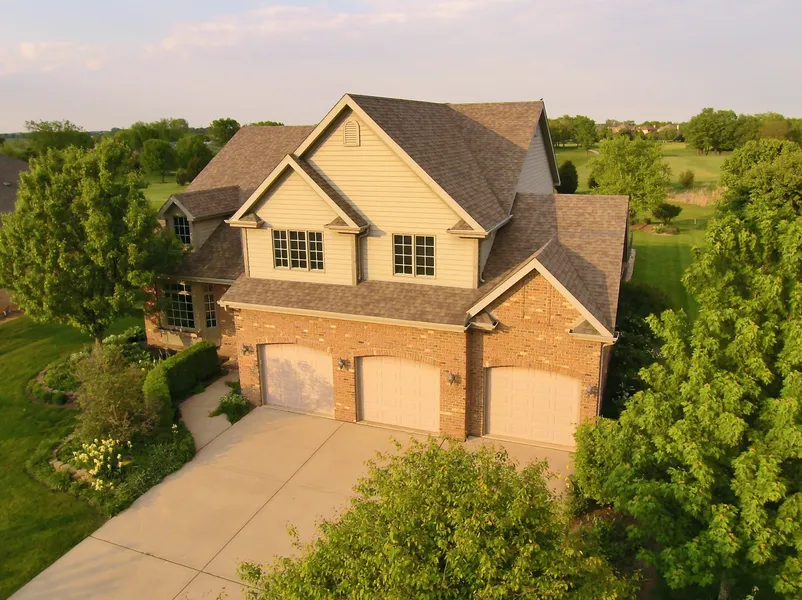 Absolutely stunning home in Nettle Creek Country Club Estates with great view of the tenth green. This home boasts 9' & vaulted ceilings throughout with beautiful oak hardwood floors on the main level, 6 panel doors, oak staircase & many other upgrade designs throughout. The large kitchen is appointed with maple cabinets & center island with breakfast bar, flowing into a casual dining area & family room. As you step down to the spacious family room, the crafted all brick, gas fireplace with draw your attention before you notice plenty of natural lighting, overlooking your backyard retreat. Additionally, you'll love having main floor laundry along with large office/studio/bedroom & full bath. The second level features a huge master bedroom with ensuite, 4 bedrooms & 2 full baths. The full finished basement includes additional living space, work shop & half bath. You'll enjoy backyard ente...