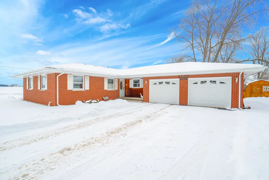 This all brick ranch home was built and has been loved by the current owner. The floor plan includes a large living room with oversized picture window, where you will enjoy views of farmland across the street and an abundance of natural lighting. The all stone, wood burning fireplace will be perfect to cozy up to on cold winter days or nights with your favorite book or while watching your favorite movie. The eat-in kitchen, with original hardwood floors, hosts a generous amount of table space and includes a wood burning stove for a bit of extra warmth at mealtime. Adjacent to the eat-in kitchen is also separate dining providing additional table space for holidays or special times of entertaining. You'll also love the original hardwood flooring throughout all 3 of the bedrooms. There are 2 full baths, one of which is a shared bath with he master bedroom and each include tile accents. Main floor laundry is located just off the kitchen. The full basement is currently unfinished but could easily be finished for additional living space. 2 car attached garage and separate shed provide plenty of space for storage. You'll also enjoy many days and evenings spending time in the huge 23X13 covered and screened in patio. Schedule your private viewing today!