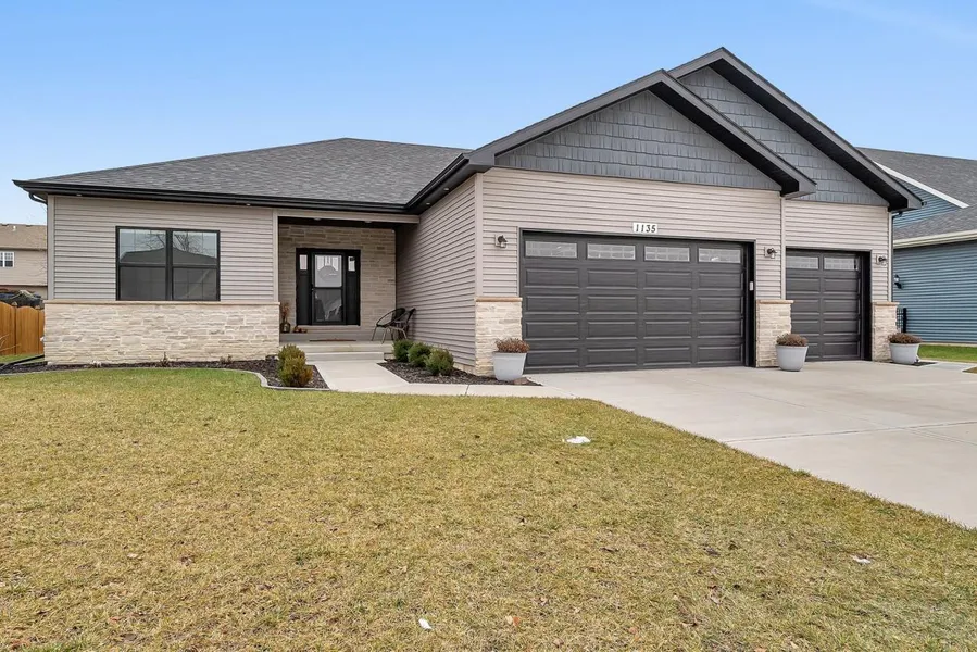 Welcome home to this luxury custom built ranch located in Farmstone of Diamond. The moment you enter the doorway you are greeted with natural light, beautiful floors, and a functional open floor plan. The kitchen boasts custom cabinetry, range hood, pantry, quartz counters, an extra long island with custom quartz counter, and upgraded sink. Smart refrigerator with see through window. The primary bedroom is a sanctuary with neutral colors, natural light, ensuite bath with custom lighting, mirrors and drawer pulls plus a tiled shower, double sinks, and walk in closet. This home is move in ready! Same flooring flows throughout home. Tiled bathroom floors. Full unfinished basement with rough in for bath just waiting for your ideas to come to life. 3 car heated garage also has side door access. Fenced in backyard. Nothing to do but move right in!