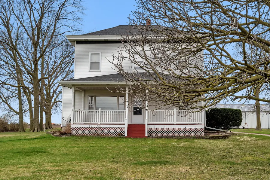 5 Acre farmette with some woods and a creek in Saratoga School District. 2 story farmhouse with attached 2+ car garage. Beautiful newer front porch for relaxing!! 4 bedrooms (5 possible) in this home! Big kitchen with eating area and island. Lots of cabinets! Range top newer. Huge living room. Entry/sun room, lots of storage! 2 bedrooms and a full bath complete the main floor. Up stairs 3 more bedrooms and a jack & jill bath. Bedrooms are a nice size!! Full basement. New boiler installed March 2024. Roof 2017. Siding 2011. 42' x 16' pole building for your toys or could be an animal building. 4 grain bins could be rented out or made into an awesome entertainment area! Use your imagination!! 5 acres just broken off farm. New PIN number to be assigned. See survey uploaded. Being sold "AS IS". Home needs some updating. Taxes reflect the current whole parcel.