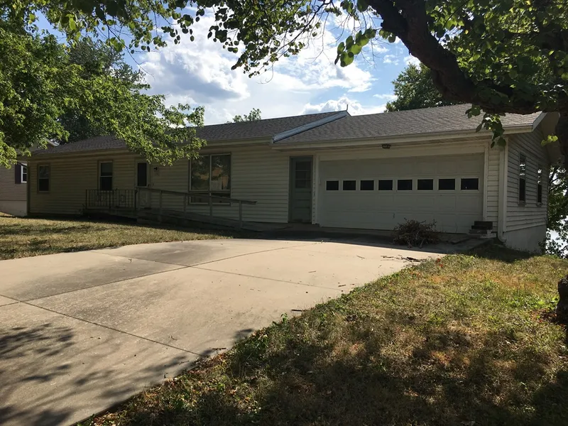 Ranch home situated on water front lot. Three bedroom, two bathroom, 2 car attached garage, lower lever garage for boat storage, plus covered concrete patio. Roof replaced in 2014 and exterior is frame with vinyl siding.