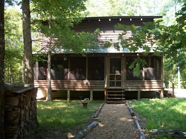 Private cabin sits on 10 ares. 12x20 Back and 7x20 front screened porch. Wood burning fireplace, upstairs can be 2nd bedroom, great getaway, 2 storage buildings.
