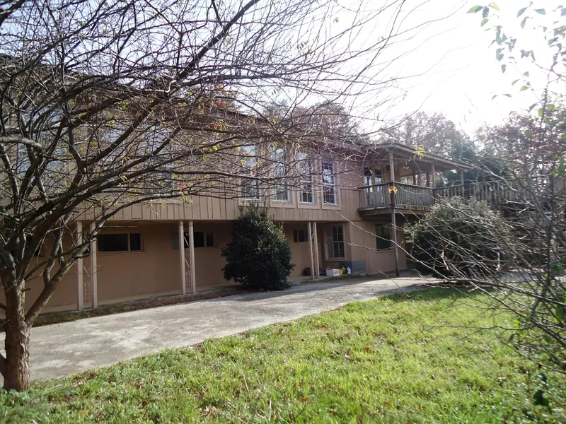 Private, bluff-view home w/fenced backyard (1.5 ac.), wooded acreage, lake & mature trees. 3 BD, 3 BA, 3 fireplaces, well-built rock & hardiboard siding, large deck & patio area, detached garage w/storage. Majority of lower level rooms w/patio doors.