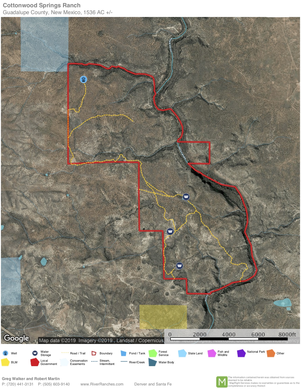 Cottonwood Springs is a private riverfront ranch consisting of 1536 deeded acres with 2 1/3 miles of Pecos River running through a scenic canyon. Multiple springs provide constant flow that creates an exceptional fishery for largemouth and smallmouth bass. There is rare 4WD road down into the 250 foot deep canyon. The river forms nice pools around giant boulders and is lined with mature cottonwoods. Dramatic side canyons also hold spring-fed pools in their bottoms. Historically this ranch is the southwest corner of the Jose Perea Land Grant which got contested after the Treaty of Guadalupe Hildago. The grant was held until it could be recognized thus the explanation for the many stone ruins and long runs of old stacked stone fences on the property. For centuries prior, Native Americans chipped arrowheads on the protected ledges overlooking the river making for great arrowhead hunting. This is beautiful canyon-edge grass-country interspersed w/ Mesquite, Pinon, Juniper, Oak, and Cottonwood accented with rock formations. Fabulous bass fishing and turkey hunting with some deer, quail, and waterfowl. Quality water like this is hard to find especially in Eastern New Mexico. Easy access via Interstate 40, one & 1/2 hours from Santa Fe or Albuquerque, two & 1/2 hours from Amarillo, and 10 minutes from Santa Rosa.