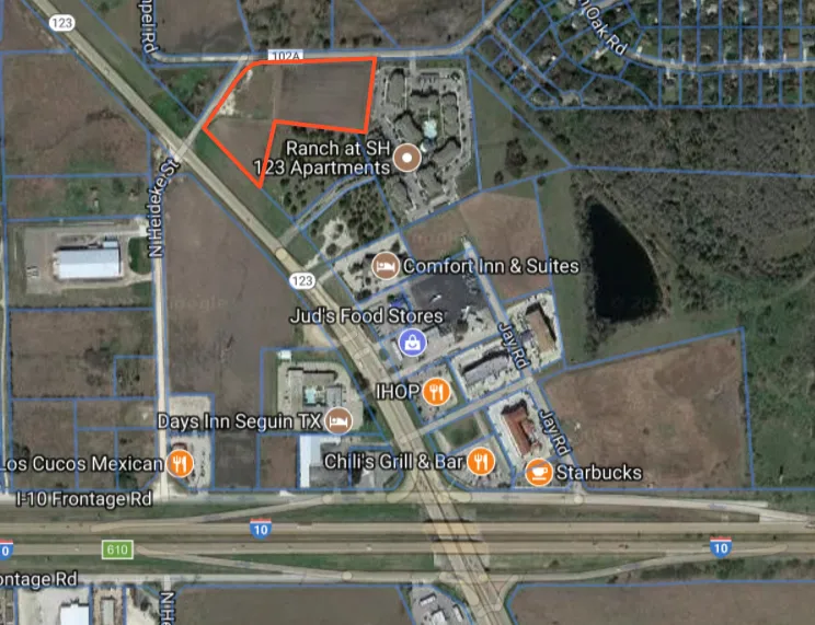 6.47 Acres located 0.05 Miles North of Interstate 10 in a Pro-Growth Commercial area of Seguin. All City Utilities Available, Hard Corner Tract, level and ready for Development. Currently Zoned Commercial. This is a property with high visibility and suitable for a multitude of uses. Major area employer Continental Automotive Systems has just announced their plans to hire 1000 additional employees. Additional 1.5 Acres available as well across the street. Total of 1410 Feet of Road Frontage.