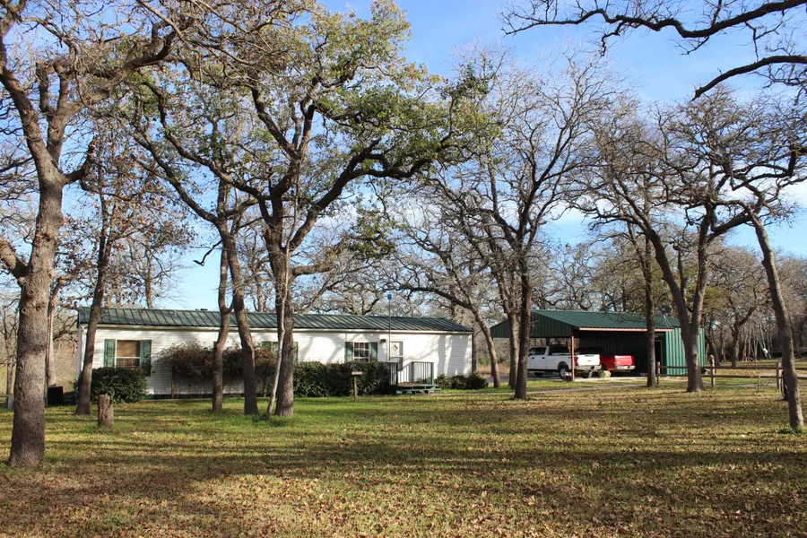 Nice property containing over 22 acres covered with large Post Oak trees located East of Seguin just off of FM 466! This property has two pre-manufactured homes, large workshop on slab with two lean to sheds, large equipment storage shed, livestock shed, two water wells, usually flowing creek, wildlife and a pond stocked with fish! The single wide home has a detached metal 2 car carport w/storage room and office and a full length screened back porch with a fireplace and a view of the pond. The other home is a three bedroom two bath double wide that is currently leased for $750 per month. This fenced and cross fenced property is ready for livestock and horses!