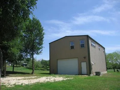 NICE PROPERTY COVERED WITH HUGE LIVE OAK, ELM & OTHER NATIVE TREES, COMPLETE WITH CRYSTAL CLEAR POND STOCKED WITH FISH! THIS UNIQUE HOME HAS A METAL EXTERIOR, OPEN FLOOR PLAN AND ENTRY AREA, BATH AND UTILITY AREA ARE LOCATED DOWNSTAIRS! MOST OF THE BOTTOM FLOOR IS INSULATED GARAGE/WORKSHOP/STORAGE AREA WITH TWO AUTOMATIC ROLLUP DOORS! THIS HOME CAN BE LIVED IN AS A PERMANENT RESIDENCE OR YOU CAN BUILD A NEW HOME IN THE LIVE OAKS OVERLOOKING THE POND AND USE THIS REISIDENCE AS A GUEST HOUSE! A SMALL PART OF THE POND IS LOCATED ON A NEIGHBORING PROPERTY! PROPERTY IS PARTIALLY FENCED!