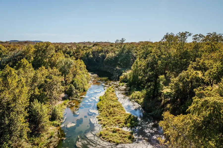 This gently rolling 519 acres features one and a half breathtaking miles of the Guadalupe River. The river is deep and wide in this area and its banks are lined with enormous Cypress, Pecan, Cottonwood, and centuries-old Live Oak Trees. The scenery and serene settings along the river valley are second to none, and the views from its accompanying hilltops are reminiscent of times past.