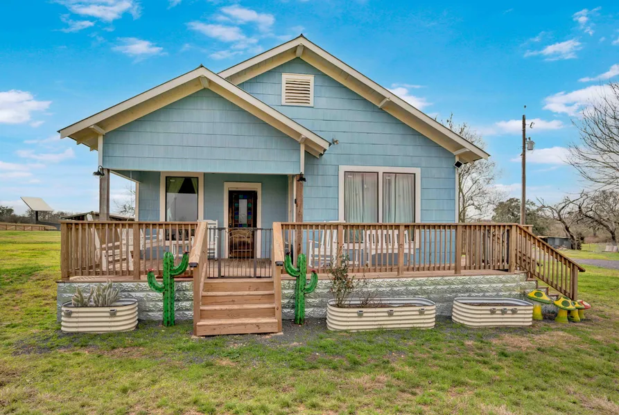 Located about 50 miles from both Austin and San Antonio, and nestled in the heart of Kingsbury, Texas, this sprawling 60-acre property offers the perfect blend of rustic charm and modern comfort.The 644 square foot farmhouse was built in 1948, and fully remodeled in 2024, comes fully furnished and move-in ready, combining contemporary style with the warmth of country living. This home provides an inviting space with impeccable attention to detail.