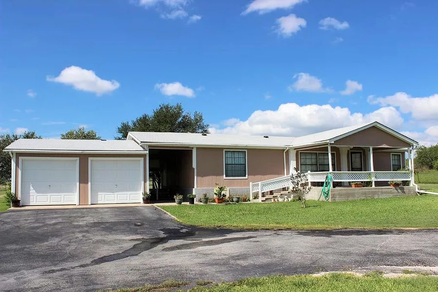 7.4 Acres apprx 8 miles south of San Marcos with a 3 bedroom, 2 bath mfg home. 2 car garage, covered front and back porches. Garden area, fenced perimeter, several trees, 2 storage sheds, paved road frontage, and easy access to town.