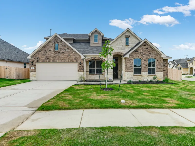 READY NOW! Boasting 5 spacious bedrooms and 4.5 large bathrooms in a 1.5-story footprint, this home is perfect for a LARGE family! Located in The Reserve at Buffalo Crossing, this brand-new home is Bellaire’s Gibbon floor plan with a 1/2 story addition for a BONUS bedroom, full bath and game room/2nd living room upstairs! The downstairs features 4 spacious bedrooms, 3.5 baths, large living room, chef’s kitchen, formal dining room, study, and media room. The open-concept living space is filled with natural light and features floor-to-ceiling windows, soaring ceilings, and wood-look, ceramic tile. The modern kitchen is a chef’s dream with custom cabinets, high-end appliances, granite countertops, and ample storage and counter space. The master bedroom is a true owners’ retreat featuring a private, ensuite bathroom with deluxe spa shower, two separate vanities, and a huge walk-in closet. The additional bedrooms are spacious with generous walk-in closets and separate baths, ensuring everyone has their own private space. This beautiful, new construction home is 3,660 square feet, and includes a large, walk-in pantry, laundry room, two-car garage, covered porch and patio, and sprinkler system. Why build when this home is ready for you and your family? Walking distance to Schlather Park and close to the new HEB, I-35, I-10, Joint Base San Antonio Randolph AFB, downtown Cibolo, shopping, restaurants, and entertainment!