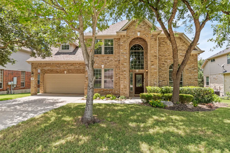 Welcome to the beautiful Jonas Woods neighborhood in Schertz. This extraordinary home offers exceptional features, including a rare 3-car garage and a picturesque greenbelt backdrop. Meticulously cared for by its original owner, this property is an absolute gem. Upon entering, you'll be captivated by the double-height entry and grand staircase. The formal dining room sets the stage for unforgettable gatherings. A sophisticated office with 12 foot ceilings, crown molding, and French-door entry exudes charm. The kitchen is a culinary haven, boasting built-in appliances, a central island for prep work, stunning granite countertops, and a convenient walk-in pantry. Adjacent to the kitchen, a cozy breakfast room awaits. The living room steals the spotlight with its double-height ceilings and abundant natural light pouring in through large windows. A magnificent stone fireplace adds warmth and character. The primary suite offers tranquil greenbelt views and features a well-appointed bathroom with a walk-in shower, separate tub, double vanity, and a spacious walk-in closet. Upstairs, a loft space provides a serene area for studying or relaxing. Three full bedrooms and two full baths offer ample space for family and guests. Two bedrooms share a jack-n-jill bathroom, while the oversized third bedroom boasts an attached sitting room for added versatility. Movie enthusiasts will delight in the media room, complete with two levels for stadium seating, creating an immersive cinematic experience. Outside, a large deck with hot tub overlooks the expansive 0.4 acre lot adorned with majestic oak trees, creating a serene ambiance. The backyard is a private oasis, backing to a tranquil greenbelt. The attached 3-car garage includes Tesla charging capabilities, catering to electric vehicle owners. Located in the highly regarded Jonas Woods neighborhood, with a neighborhood pool, this home is surrounded by excellent schools, ensuring an exceptional education for your family. Don't miss the opportunity to own this meticulously maintained home with outstanding features and an idyllic setting.