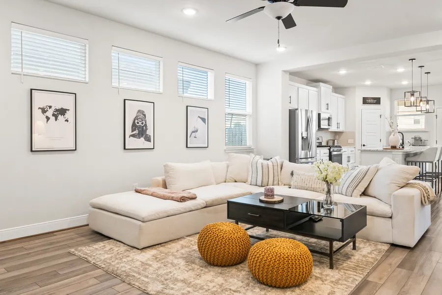 Welcome to your dream home in the prestigious community of Sunrise Village! Nestled on a charming greenbelt lot, this almost-new one-story contemporary home, built by Rialto, boasts timeless elegance and modern comforts. As you step through the front door, you're greeted by eleven-foot ceilings and an airy great room featuring beautiful LVP floors, a wall of windows, generous natural light, and a cozy living area. The open floor plan seamlessly connects the dining room, living room, and kitchen, making it perfect for entertaining and everyday living. The spacious Primary Suite is a true retreat, located on one end of the house for added privacy. It features a walk-in closet, a luxurious walk-in shower, double vanity with quartz counters, and plenty of storage space. On the opposite wing, you'll find three additional bedrooms. One is an en-suite, ideal for guests or family members who app...