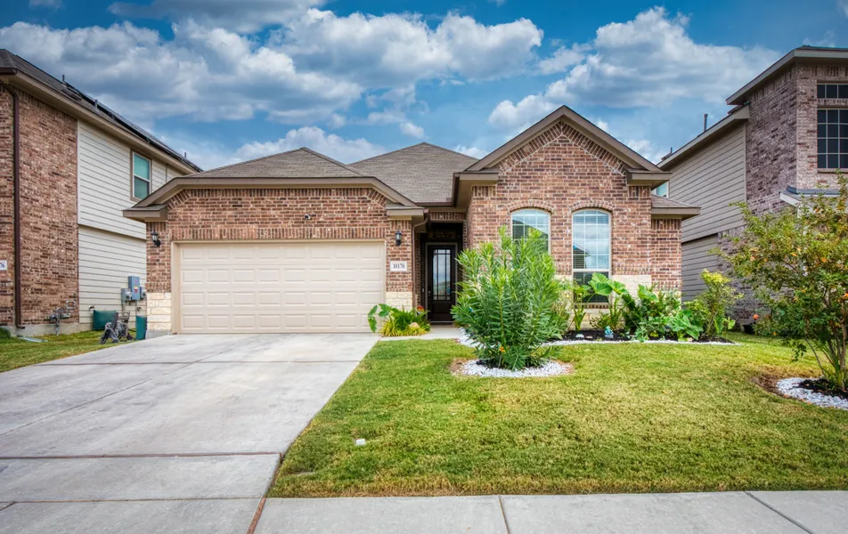 Skip the new construction wait and step into this impeccable, newly built home - just minutes to Randolph AFB! No steps! This stunning one-story home is a rare find, offering 4 spacious bedrooms PLUS a versatile game room or office space, all on one level. The exterior features a combination of brick and stone, and the gorgeous mature landscaping provides a tranquil outdoor retreat. Inside, you'll find 8' doors and 10 ft high ceilings. The home flows beautifully with wide plank luxury vinyl flooring throughout the entry and living areas. The oversized kitchen island is a grand centerpiece, and the kitchen features a designer backsplash, stone countertops, light grey cabinetry, and a gas range. Homes like this, with its unique layout and thoughtful design, don't come along often!