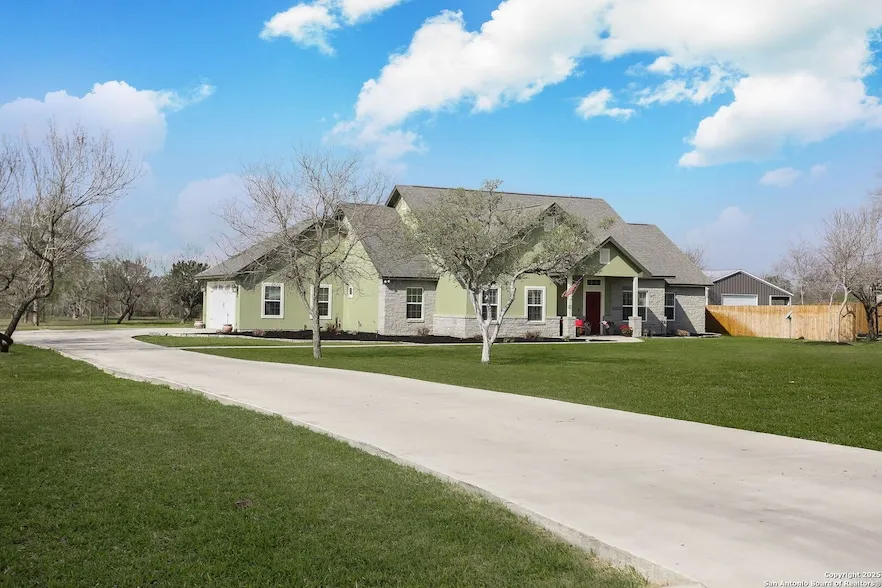 Welcome to 170 Siena Woods, Marion, TX! Experience the charm of country living with the convenience to RAFB at 11.6 miles, nearby schools, shopping, and easy access to IH 35 & Hwy 90. This stunning 4-bedroom, 3.5-bath home sits on nearly 2 tree studded acres of lush, level land. The open-concept kitchen boasts a large island, custom cabinets, and modern appliances, perfect for entertaining. The spacious master suite offers a luxurious bath and impressive closet, while two additional bedrooms share a Jack and Jill bath. Upstairs, discover a game room and guest ensuite. Enjoy the oversized garage, screened patio with hot tub, and ample storage. With nearby parks and schools, this home is a must-see. Schedule your showing today!