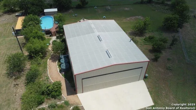 Custom 80' x 60' Home and Hangar Spray-foam Insulated on 1+- Acre - Zuehl Airpark (1TE4). A rare opportunity to own a custom-built home with private hangar in the gated Zuehl Airpark community, conveniently located between New Braunfels, Austin, and San Antonio. The airpark features a 200' x 3,000' lighted grass runway, ideal for private aviation. Home size is 3684 sq feet. This two-story home offers 5 bedrooms, 3 full baths (including two Jack-and-Jill setups), a half bath, two living areas perfect for large families or to share with flying friends. Wonderful open-concept kitchen and living space with massive island for entertainment overlooking the backyard. The downstairs primary bedroom suite opens to a spacious layout, his/hers sink and big all tile shower. Extra reading corner overlooking a fenced backyard with an above 54'x18' ground swimming pool. 20' x 10' flex room in shell condition-perfect for an office, gym, or guest space. The 50' x 48' hangar includes a 50' wide x 14' tall Bifold Schweiss door, providing access to the taxiway and runway. Ideal for pilots or aviation hobbyists seeking luxury and function on a private lot. 6600 gallon rainwater catchment used for your gardening or fill the pool all in a fully fenced backyard.