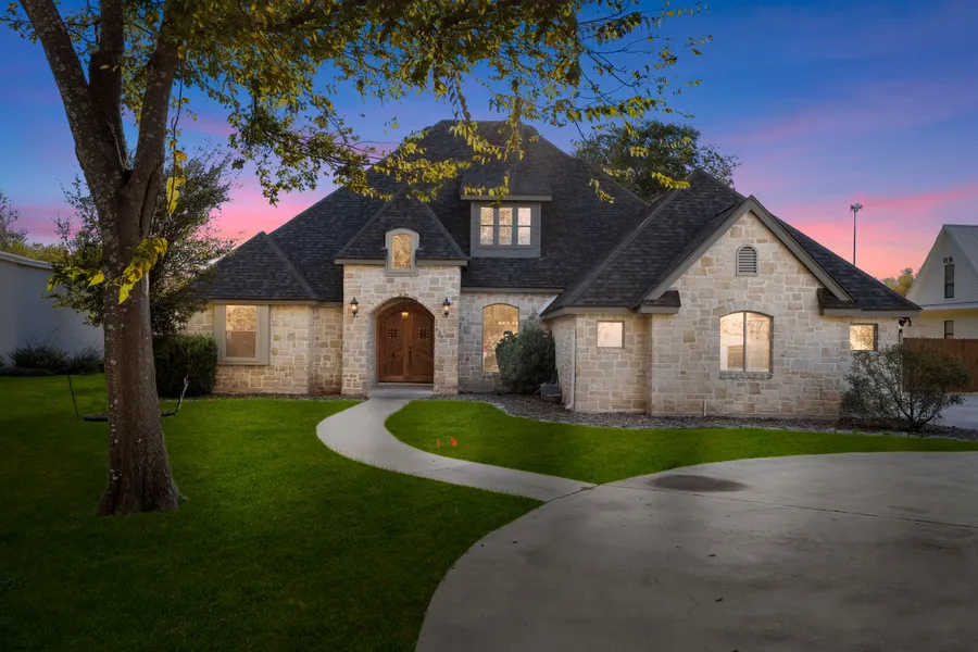 Beautiful 4 bedroom, 4 bathroom home in the heart of McQueeney with lake-area convenience and recent updates throughout. This spacious property sits on a large, fenced .5 acre backyard with mature trees and a drive through gate offering easy access for parking a boat or trailers. Enjoy lake access nearby and a quiet neighborhood setting just minutes from nearby schools, 9 miles from New Braunfels, 7 miles from Seguin, and 36 miles from San Antonio. Inside, the home features a gas fireplace in the living room and two dining areas for flexible use and entertaining. The kitchen includes gas cooking, a double oven, and a built-in refrigerator, providing a highly functional layout for everyday cooking. Upstairs, a flex space offers options for an additional bedroom, second living room, or home office. The three car garage is full size, fits large trucks, and features epoxy floors for durability and easy maintenance. Recent renovations include a new roof, updated HVAC, flooring, carpet, paint, and updates to the primary bathroom. Outdoors, a covered patio overlooks the expansive backyard, creating ideal space for gatherings, outdoor dining, or future enhancements. A move-in ready home with generous spaces, updated systems, and excellent access to the area's recreation and conveniences.