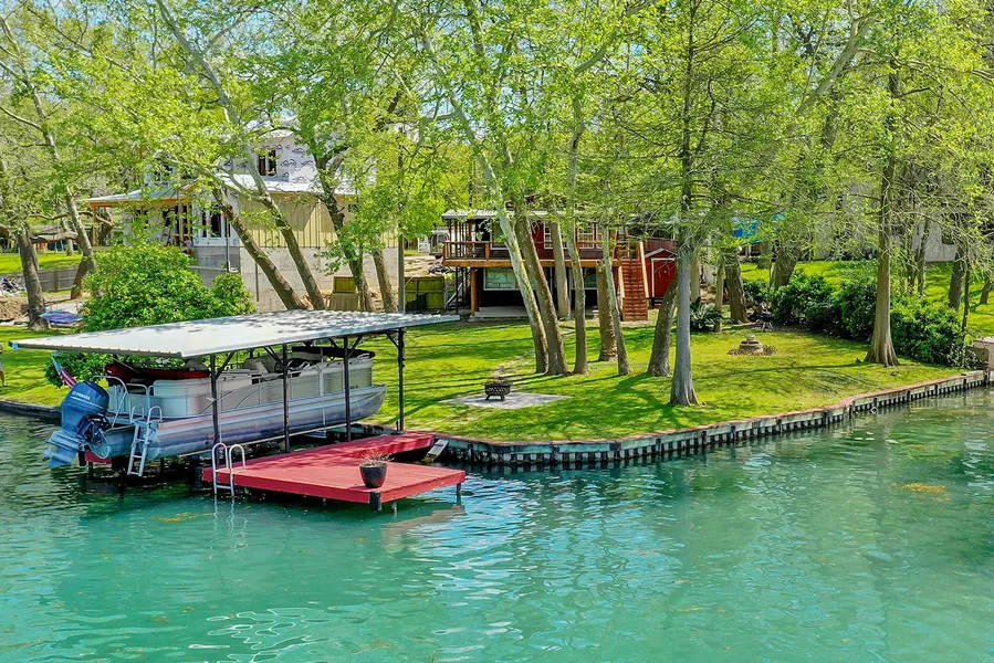 Panoramic Views of Lake Dunlap! This backyard is ready to entertain with its 1500 sq. ft. deck, huge patio slab, outdoor lights, landscaped backyard, oversized boat dock, and boat house with an electric lift. Mature trees provide plenty of summer shade. Updated 3/3 home is nestled on a point lot giving you main lakefront and cove frontage. Inside youll find large windows for that incredible Lake Dunlap view, wet bar, and open floor plan. Residents can enjoy a private boat ramp and HOA waterfront park.