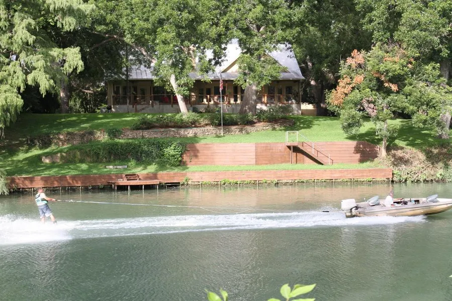 Beautiful Texas Hill Country Custom Home on Lake Seguin nestled on just over 1 acre of land with large oak, pecan & cypress trees. 157 feet of improved waterfront on Lake Seguin which is a dammed section of the Guadalupe River great for waterskiing, fishing, kayaking, jetskiing, and more. Interior features include high ceilings with exposed beams in living room, wood burning fireplace, granite countertops, custom red oak cabinets, and hand sculpted stained concrete, 1500 sq floored attic designed to be converted to living quarters. Located across the lake from Starke Park Golf Course. CHECK OUT THE VIRTUAL TOUR FOR A REAL HD VIDEO TOUR...