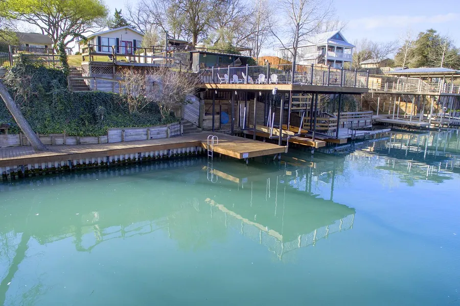 An entertainer's paradise, with over 73ft of prime improved Lake Dunlap waterfront including an oversized boat lift, double jetski lift, and a large sundeck on top of the boat house. This amazing property sits on some of the clearest waters of any of the area lakes. 2 unique cottages make this an excellent vacation home or income property. The main house is a Sears cottage from the 1950's (2/2 at 976 sq ft). The guest house is a 2/1 at 807 sq ft built in 2005. Property is fully fenced, with an automatic gate. It has a great yard for enjoying hot summer days plus multiple decks/patios, covered sleeping porch, and outdoor kitchen!