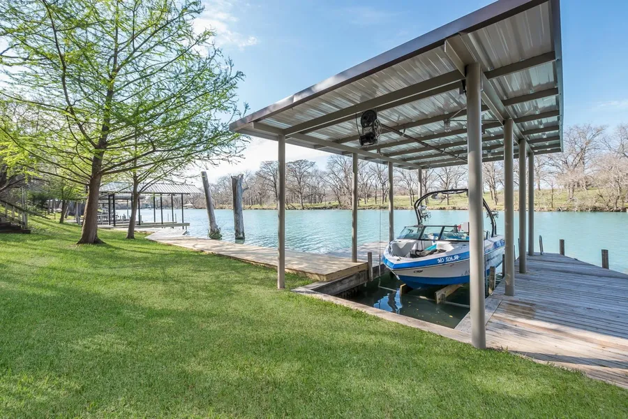 Wake up with lakefront views looking out of the picturesque windows that expand across the lakeside of the home. 75 ft of prime Lake McQueeney waterfront that includes the recently built boat house added in 2018! Built to entertain this stone exterior home boast an open floor plan, spacious island kitchen, & an impressive rock fireplace in the living room. Easy access to the lake. North facing and mature trees to keep you shaded throughout the day.