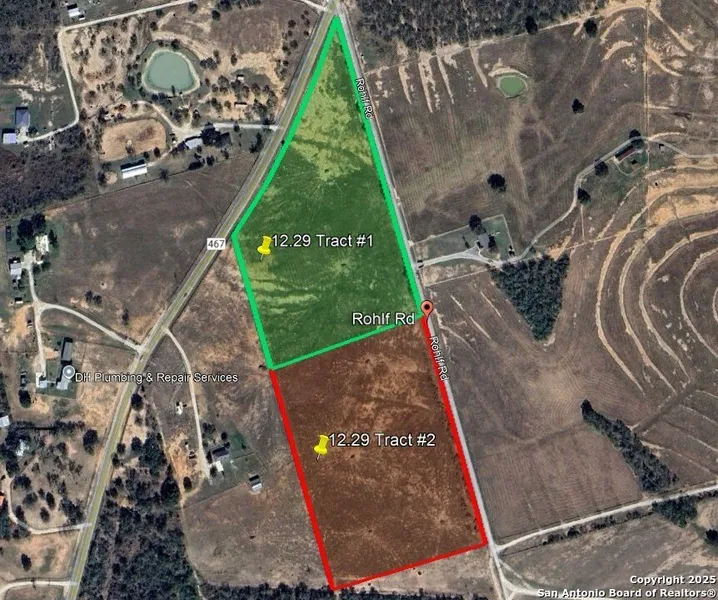 Tract #1 and Tract #2 of Agriculture Exempt Land, with each tract surveyed at 12.29 acres on Rohlf Road. Paved frontage road on Rohlf Road. Price per Tract.