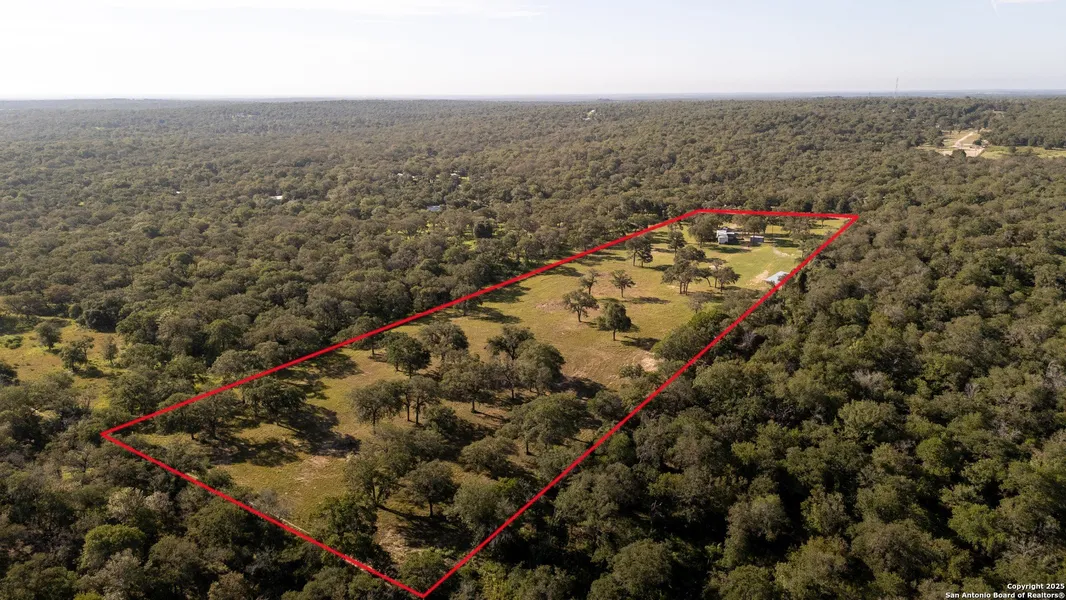 9.99 ACRES- NO HOA -UNRESTRICTED ! Country living at its finest completely fenced, in a Park like setting cleared to perfection with scattered mature shady oaks on the entire property. Includes a 240 meter electric pole, public water, an aerobic septic system, a 60 x 20 pole barn, a 40x30 RV pad with water, electric and sewer connections, a 20 ft Conex container, 2 security lights that light up the area around the mobile home and RV pad. Septic system is permitted for a 2500 sq ft 3 bedroom home or the equivalent dwelling units totaling 240 gallons per day. This property is prime for building your dream home, owning horses and/or livestock or just enjoying the quiet. Deer are a frequent visitor and an occasional flock of turkeys may stroll through. The mobile home has AC and working utilities. It can be lived in or used as a temporary place while you build your dream home. The owner had a separate 400 amp capacity transformer and pole installed providing the flexibility of running electricity to a barn, warehouse, workshop, or more structures allowing for potential commercial/business/residential possibilities. Shopping in Seguin is only 10 minutes away, New Braunfels and San Antonio are only 40 min. Don't let this one -of -a kind property slip by. You must see to appreciate it! OWNER WILL CONSIDER FINANCING
