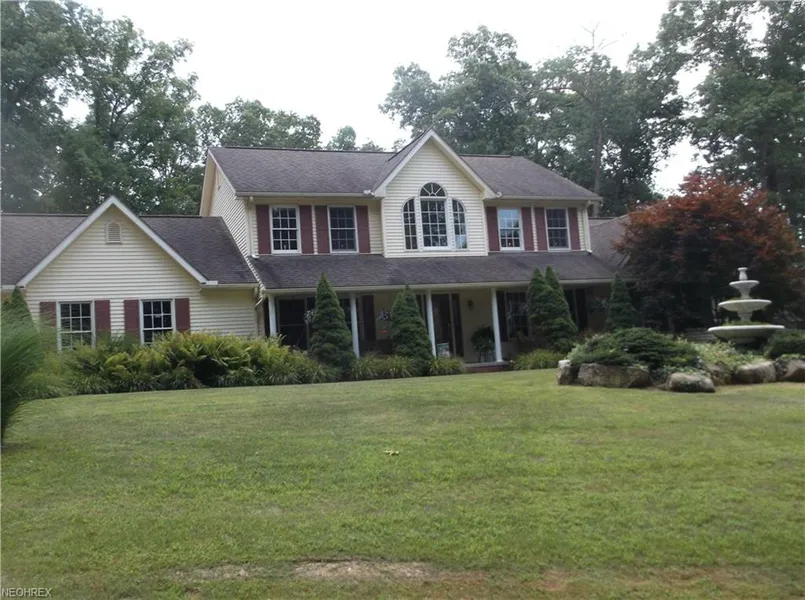View the outdoors & wildlife from inside this fabulous 4 bedroom, 3 1/2 bath home on almost 3 acres close to Salt Fork & Seneca Lakes. Enter the home from the inviting, covered front porch into a foyer w/vaulted ceilings & decorative archways w/home office to left w/many built-in cabinets/desk space ready to greet clients for your home business. (Floor plan allows office to be opened up as a formal dining room, if preferred.) Formal living room leads to a brightly lit family room w/gas fireplace & massive arched windows w/open concept to the dining area & large kitchen w/plenty of oak cabinets/pantry, a breakfast bar & desk. A sunroom leads to the large rear deck both overlooking the back yard & woods. The 1st floor master bedroom offers a large master bath w/soaker tub, his/her split sinks & his/her closets. The laundry/mudroom & 1/2 bath conclude the first floor w/easy access from back...