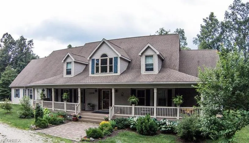 Quality built two story home secluded in the middle of this 80 acres of paradise! Seclusion at it's finest with long private drive surrounded by nothing but woods and wildlife. Property is know as the Turkey Ridge Farm. The home is custom built with poured basement walls & all the extras: custom built kitchen w/breakfast bar, walk-in pantry & all stainless steel appliances, convenient first floor laundry, first floor master suite w/private balcony & large master bath, there is an extra en-suite on the first floor as well which is great for guests or as an in-laws suite (home is ADA compliant if needed). Gorgeous stone fireplace in the open living room w/cathedral ceilings and floor to ceiling windows. Home has Geo Thermal HVAC system, whole house dehumidifier, & also includes the already installed back-up generator. The additional 30' x 62' workshop is great for the handyman or to hold all the farm equipment. The property is currently listed under the state forestry stewardship program, lots of beautiful hardwood trees on property and many marked trails throughout the property. Mineral rights are being reserved by homeowner at this time. Home is located in northwestern Guernsey County near Salt Fork State park & just minutes from schools & shopping. Plat map is attached w/clearly marked property pins and trails. Timber appraisal available upon request. Home comes with a full one-yr home warranty.
