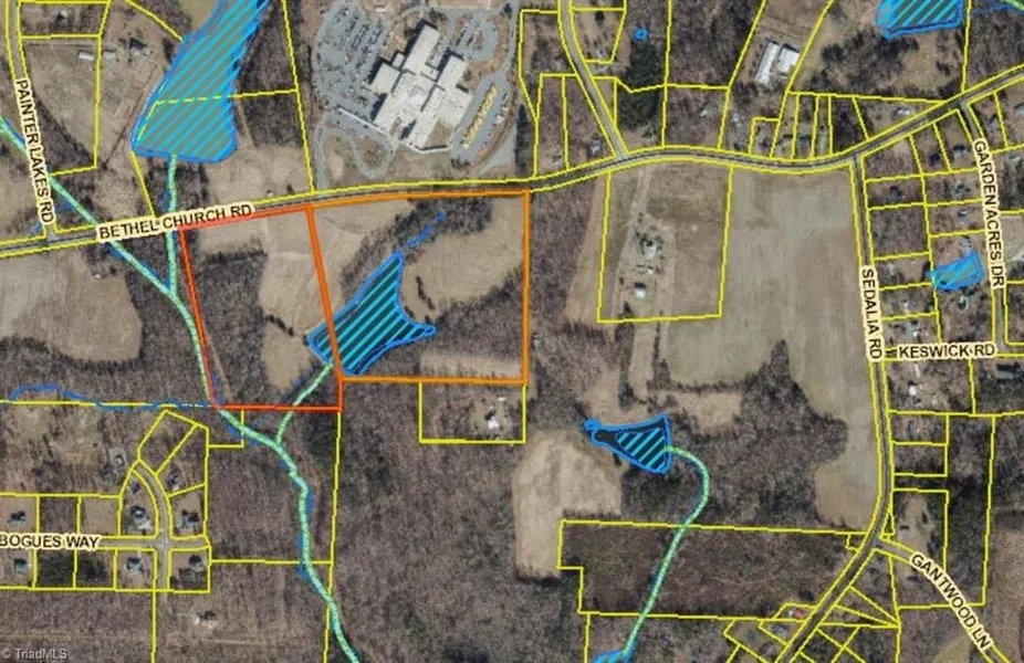 Beautiful laying property with long road frontage on Bethel Church and Sedalia Roads. Across from Eastern Guilford High School. Adjacent acreage to the east is also available. Huge opportunity. Call Office for details.