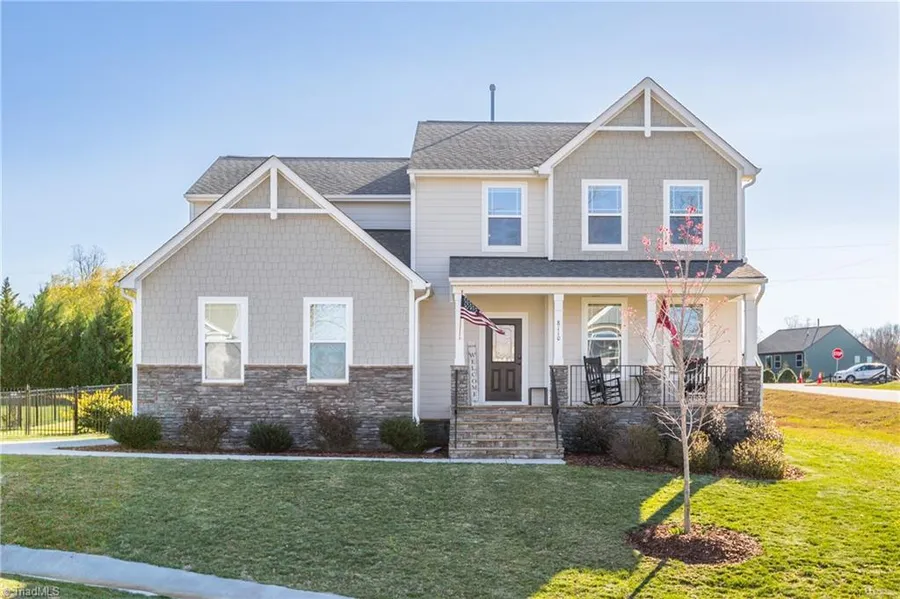 BRING US AN OFFER! Extremely motivated sellers have already relocated for work & are ready to sell! This house does not disappoint. The rocking chair front porch is the perfect place to start or end your day. Upon entering the home you will see all the natural light that fills the space & invites you in. A beautiful chef's kitchen w/gas cook top & hood, built-in oven & microwave, granite countertops, & island are just waiting for your culinary creations. The open floor plan lets you transition into either the formal dining room w/beautiful wainscoting or to the breakfast area & into the spacious living room w/built-in shelves & gas log fireplace. Upstairs you will find a large bonus room (or office space), as well as all 3 spacious bedrooms. Kitchen refrigerator to convey. Home sits on large corner lot in the cul-de-sac w/fenced backyard. Storage building is wired w/100 amp service. Centrally located to GSO/High Point/Kernersville! See Agent Only Remarks.
