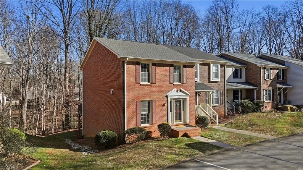NEW Flooring thru out. FRESH nuetral paint thru out. This TURN KEY end unit 3bdrm/3.5 bath townhome offers nearly 2400 SQ FT of move-in ready space at an incredible value! Don't overlook this opportunity. Spacious living room open to dining. Large deck overlooks wooded area, offering privacy & a view! Primary bdrm with walk in closet & en suite bath plus 2 additional bdrms up. Huge FINISHED BASEMENT holds unlimited possibilities including game/recreation room, home gym, office, theater rm or potential in law suite. Basement features bar area, built in sink & counter, full bath, fireplace & private entrance, as well as large unfinished space with shelving for ample storage. Other features include replacement windows, 2 fireplaces & plantation shutters in front. Tucked into one of the best nooks in Woodridgde, just a short stroll to the Community pool, clubhouse & tennis court. Amazing location with easy access to the loop, shopping, parks, Greensboro Natural Science Center & more!