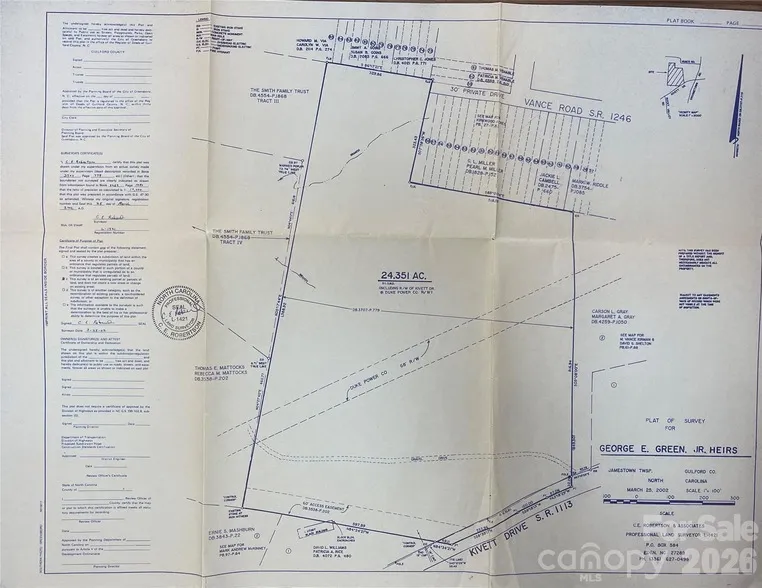 Set across more than 24 breathtaking acres, this extraordinary property blends timeless countryside beauty with unmatched privacy and prestige. Rolling meadows unfold into mature forest, creating a secluded sanctuary that feels worlds away yet remains remarkably connected to the best of Greensboro. Properties of this scale and setting are increasingly rare. Whether you envision a grand private estate, an equestrian retreat, or a family compound, the possibilities are as expansive as the land itself. A truly exceptional offering for the discerning buyer seeking space, privacy, and potential. Shown by appointment only. Please do not drive down drive off of Kivett.