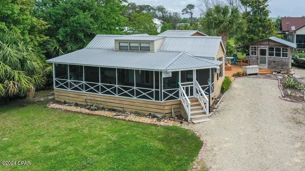 CHARMING RETREAT JUST A SHORT WALK TO WHITE SAND BEACHES AND THE GULF OF MEXICO! Live the beach life at 348 Desoto St with tons of relaxing outdoor space to enjoy and room for boat parking and RV storage. The welcoming screened porch invites you into a cozy living space complete with beamed vaulted ceilings. An open concept layout flows seamlessly into the eat-in kitchen complete with breakfast bar seating and modern appliances. Included in the main house is one bedroom, one full bath and a half bath. Detached is a studio apartment for guests with a kitchen, one bedroom, a half bath and laundry. The shaded deck space connects the two structures for extended living space and entertaining. An enclosed shower with hot and cold water is an added convenience after a fun day on the water along with a fish cleaning station complete with a sink and prep area. Situated on just over 1/4 acre, this one of a kind home is sold fully furnished and move-in ready with covered parking and storage. In an area with proven rental income, this would make the ideal investment or your home away from home. No HOA dues apply and flood insurance may not be required in the X Flood Zone. This golf cart community is convenient to everything St Joe Beach has to offer from fine dining, fresh seafood to recreation facilities and the public boat ramp. This is the one you've been waiting for! Call today for a showing & tour of the area!