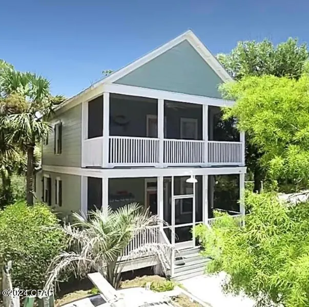 DESIRABLE 3BD/3.5BA HOME JUST 25 STEPS TO THE POOLSIDE DECK IN THE COVETED COMMUNITY OF BAREFOOT COTTAGES! The open floor plan features wood grain tile throughout the main living areas, making maintenance a breeze. Classic in design, the beautifully appointed kitchen is upgraded with quartz counters, SS appliances & breakfast bar with seating for 4. The living room is styled in coastal decor, offering a queen sleeper sofa and comfortable double recliners for relaxation while watching the new 55'' Smart TV. Each bedroom comes with its own private ensuite bathroom, ensuring privacy and convenience for all guests along with new 42'' Smart TV's. One of the bedrooms also has access to a private balcony. Both porches are screened, providing a serene and private space for unwinding. Enjoy the views from the new Polywood porch swing on the 1st floor porch or drinks from your 2nd fl porch overlooking the pool. Barefoot Cottages is resort living at its finest with amenities like no other in the area including 2 pools, a hot tub, grilling areas, manicured grounds & community building. Restaurants & shops are a 5 min drive into Port St Joe or in the opposite direction visit pet friendly white sand beaches just 5 miles away. As the owner says: ''You can shake the sand from your shoes but it will never leave your soul.'' This unit is sold furnished & rental ready. More photos & 3D tour coming soon.