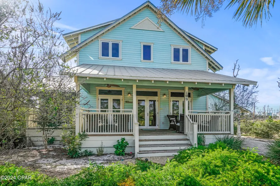 Discover the perfect blend of southern living & coastal cottage in this custom-built 4BR, 3BA home nestled near the stunning St Joseph State Park. The first thing you're greeted with is the expansive porches for sipping tea with family & friends. As you ascend inside this dream open floor plan, you'll immediately be drawn into the warmth & charm this coastal retreat features with elegant travertine tile, raised wood ceilings, & lots of space for creating unforgettable moments with family & friends. The fully-equipped kitchen features granite countertops a center island & has everything you need for culinary creations and a private outdoor gas grill awaits your grilling adventures. The expansive main bedroom features an en-suite bathroom with a standalone shower, while the second bedroom boasts direct access to one of the outdoor decks. The third bedroom shares a full bathroom with the second bedroom. Perfect for larger groups, the fourth bedroom is outfitted with two bunk beds and two twin sleeper sofas, plus an attached full bathroom with a tub/shower combination. Enjoy the gulf breezes & peaceful surroundings from any of the 3 spacious porches. Situated in the private gated community of Sunset Pointe, you'll enjoy convenient access to the shared amenities including beach access, a community outdoor pool, and serene natural conservation areas with scenic boardwalks. This home is perfect for those seeking both relaxation and adventure. Nearby, Cape San Blas beckons outdoor enthusiasts with its array of activities, from kayaking and paddleboarding to biking along breathtaking coastal trails. Discover the enchanting town of Port St. Joe, where charming shops and delightful local dining await, all set against a backdrop of rich history that enhances the area's allure. Don't miss the opportunity to make this charming coastal retreat your own. Explore the 3D tour & schedule a private showing today & start living the Beach Life!!!