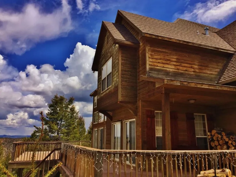 This exquisite 4 bedroom, 4 bath cabin located in Blue Mesa Estates is a true gem located in the heart of Colorado. Sitting on 10 acres with a private gated entrance, this 4,133 sq. ft. home is full of luxurious amenities and borders public land. Stunning floor to ceiling windows in living area allow for spectacular views of the West Elk Mountain Range. A floor to ceiling fireplace sets as a beautiful centerpiece for warm family nights. The gourmet kitchen has center island and custom cabinets. Tongue and groove pine ceilings are found throughout the home, as well as beautiful slate and hardwood floors. The upstairs has a huge game room that overlooks the living area is accented by a custom wrought iron railing. There are three additional bedrooms located upstairs. The master bedroom is on the main level with impressive on-suite featuring jetted tub and slate shower. The master also has...