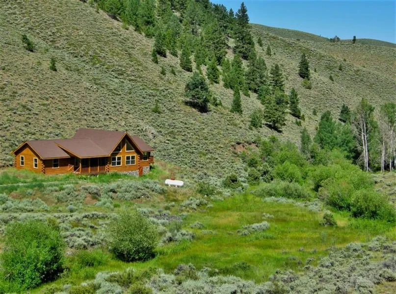 The logs of the cabin were originally set in the mid-1990s the cabin has been finished to a very high standard. The never lived in 4 bedroom, 2 bath log cabin on 40 plus-minus acres backs into the BLM with limitless access to public lands and backcountry. The cabin features a vaulted great room, custom kitchen, pine ceilings, and rock fireplace.